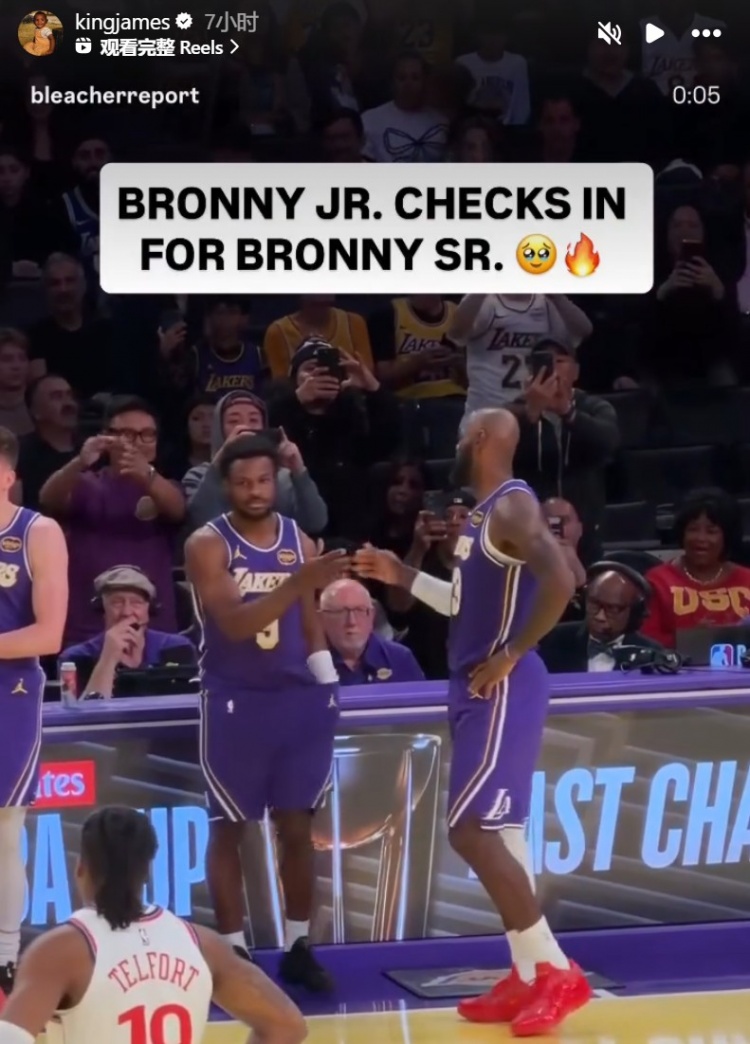 今天,詹姆斯在社交媒体转发了这一时刻。